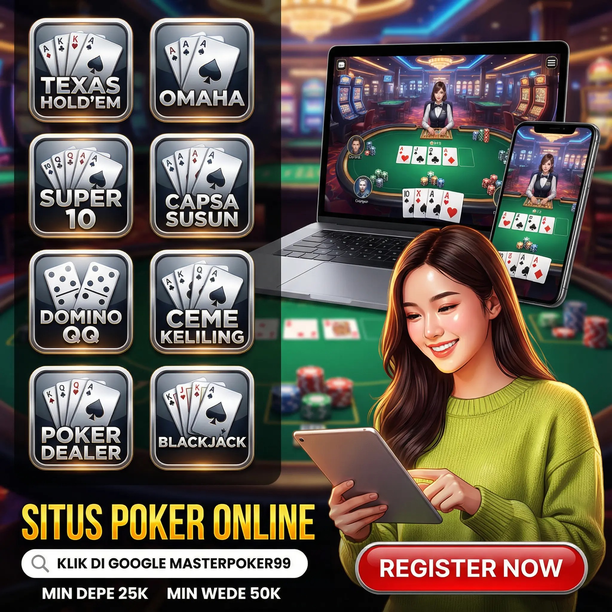 MASTERPOKER99 adalah situs agen idn poker domino99 online gampang menang hari ini, dapatkan bonus terbesar dan didukungg dengan layanan cs yang ramah selama 24 jam penuh.